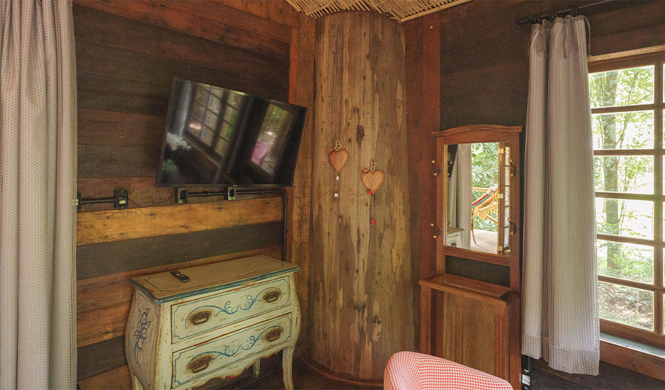 Suspenso a seis metros acima do solo, o Chalé da Árvore é um refúgio que proporciona mais do que uma simples hospedagem. Nele, você vai experimentar uma jornada envolvente, numa combinação perfeita de conforto e natureza.