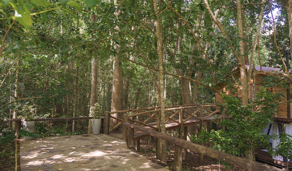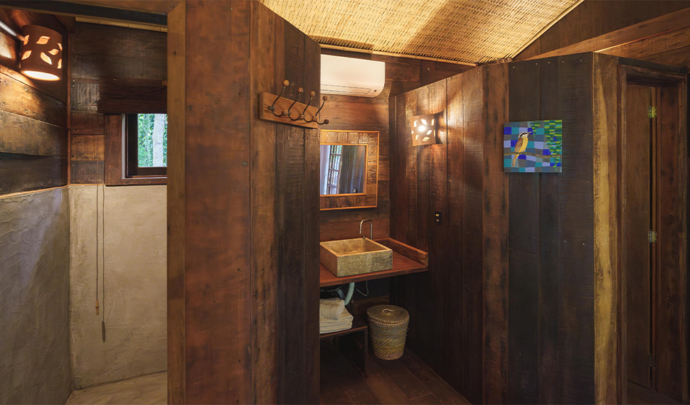 O verdadeiro encanto deste chalé reside na sua capacidade de proporcionar uma experiência sensorial incomparável, que transmite sensação de paz. Sem esquecer que se trata de uma obra que preserva integralmente as árvores que a sustentam. Tudo meticulosamente planejado para honrar o compromisso da Pousada Tankamana com a preservação e o respeito ao meio ambiente.